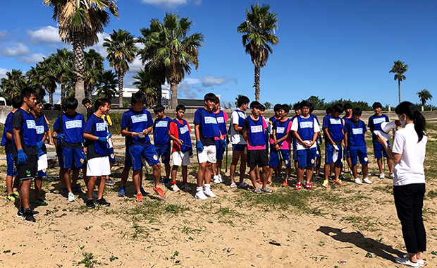 汗ばむ日差しの快晴の中、マリーナ河芸に集まった高校生は全員サッカー部に所属するスポーツマン!見晴らしのいい海水浴場で相手の動きを読みながらの大会は大いに盛り上がりました。